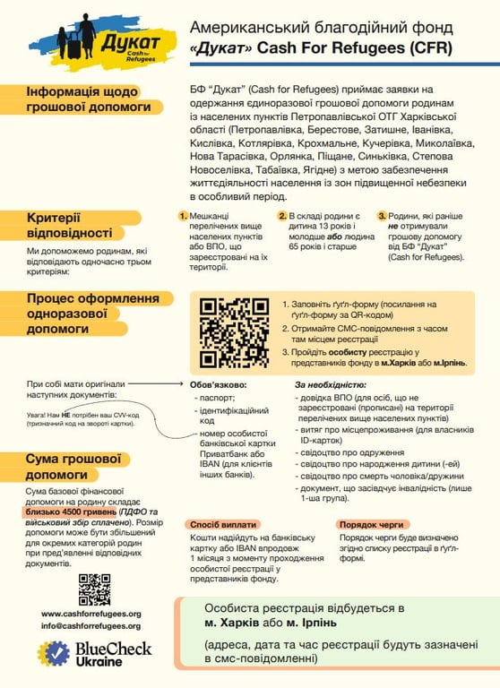 Один із критеріїв для отримання виплат — родині раніше не виплачували кошти від Cash For Refugees.